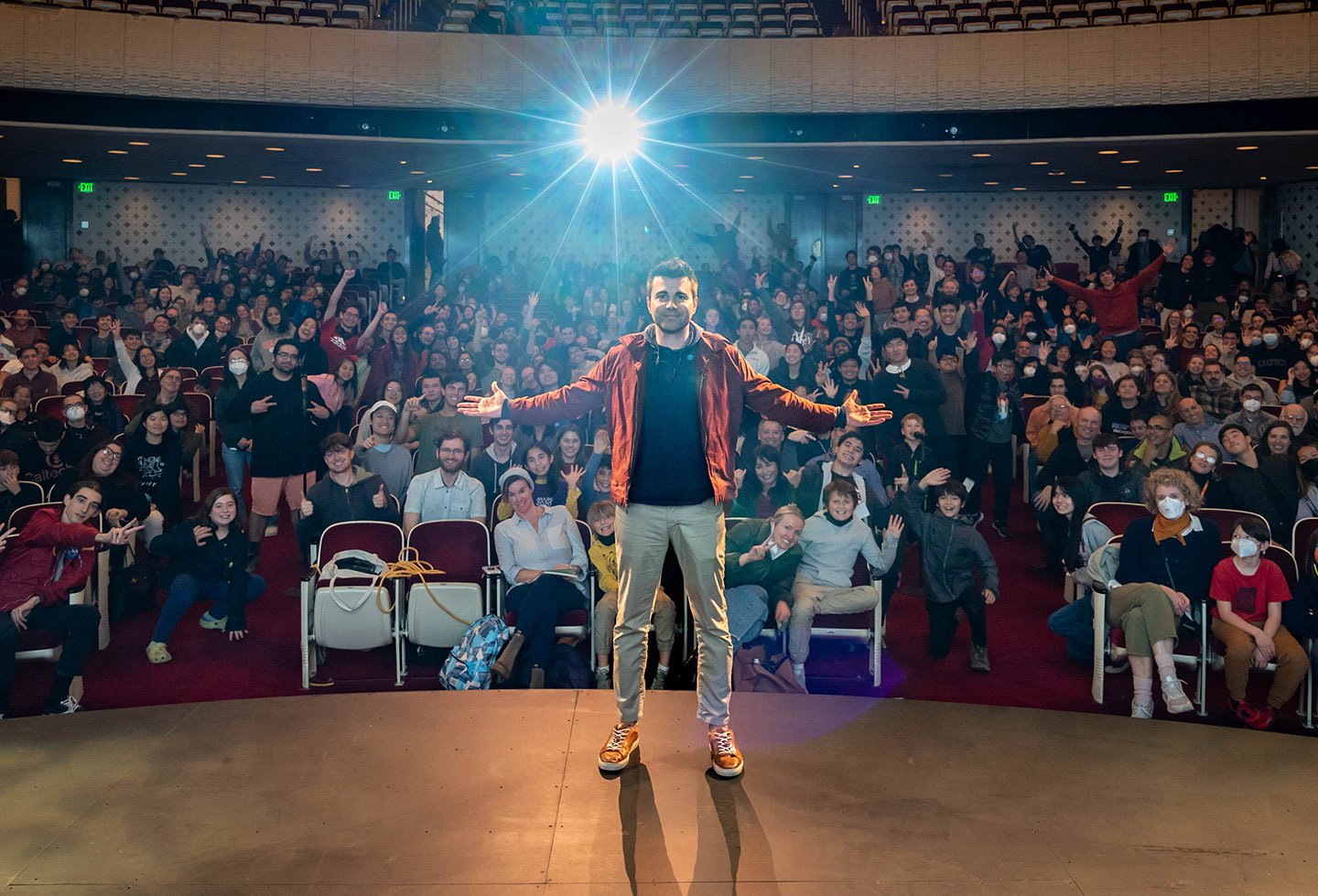 What may not be as obvious is that his videos are chock full of science and engineering lessons, as Rober explained to a packed auditorium at Caltech on Monday, January 30. In his Caltech Management Association talk titled "Hiding the Vegetables: Mark Rober's Artform of Science Communication," Rober, who previously worked at JPL for nine years, discussed how he sneaks science and engineering education into his videos. For instance, in this video about creating massive amounts of "devil's toothpaste," one learns about the square-cube law, which explains the relationship between the volume and surface area of an object.