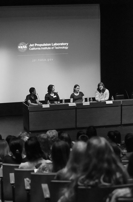 Over the course of the day, students and their families attended panels on undergraduate research opportunities and participated in social events where current students shared their experiences of Caltech life. They also listened to presentations from female scientists and engineers of the Jet Propulsion Laboratory.